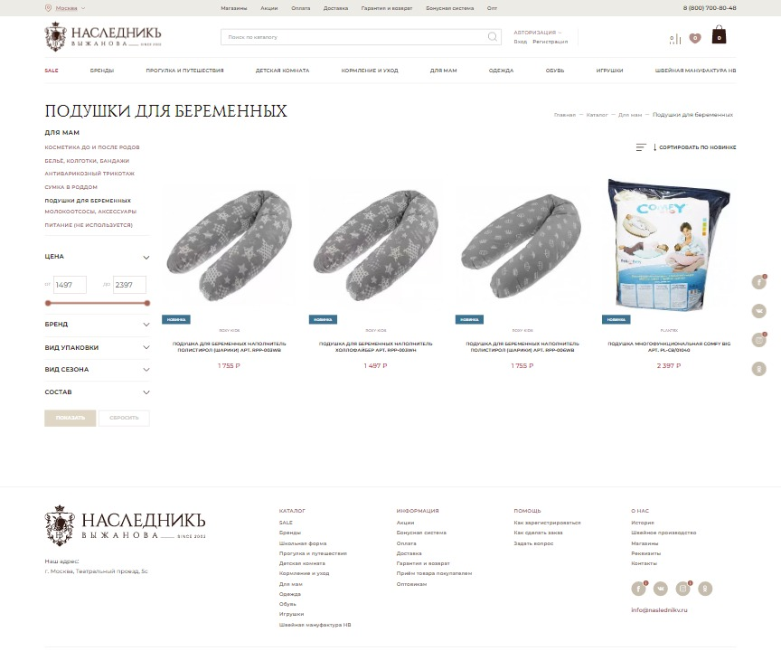 В каталоге магазина около 19 тысяч товаров, чтобы пользователи не терялись во многообразии товарных предложений на сайте применяется постраничная навигация товаров — пагинация, используются разнообразные маркировки: «Лидеры продаж», «Новинка», «Горячее предложение», «Распродажа», «Новая коллекция». Есть возможность фильтрации (отбора) по возрасту, полу, материалу, цене.